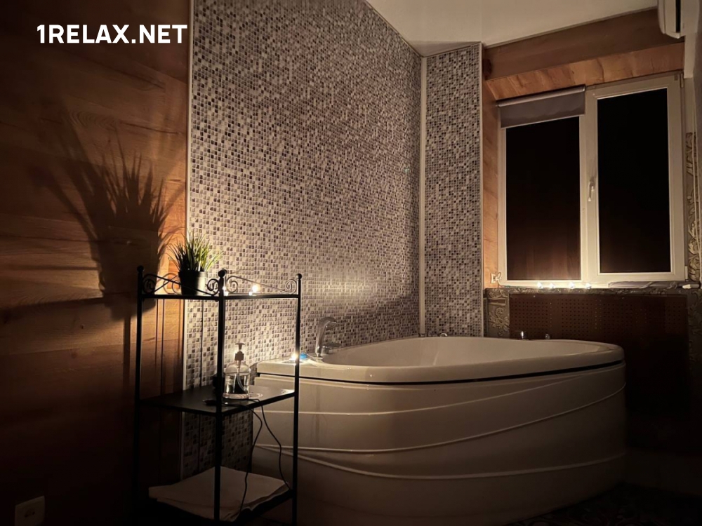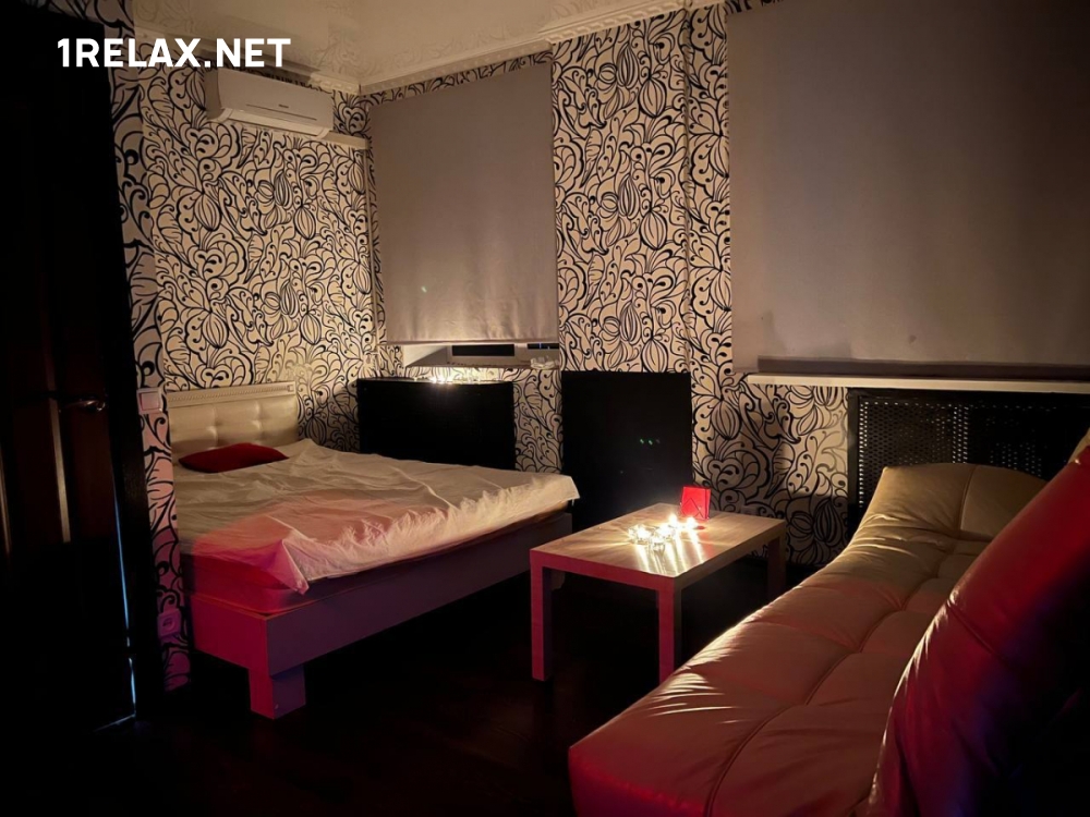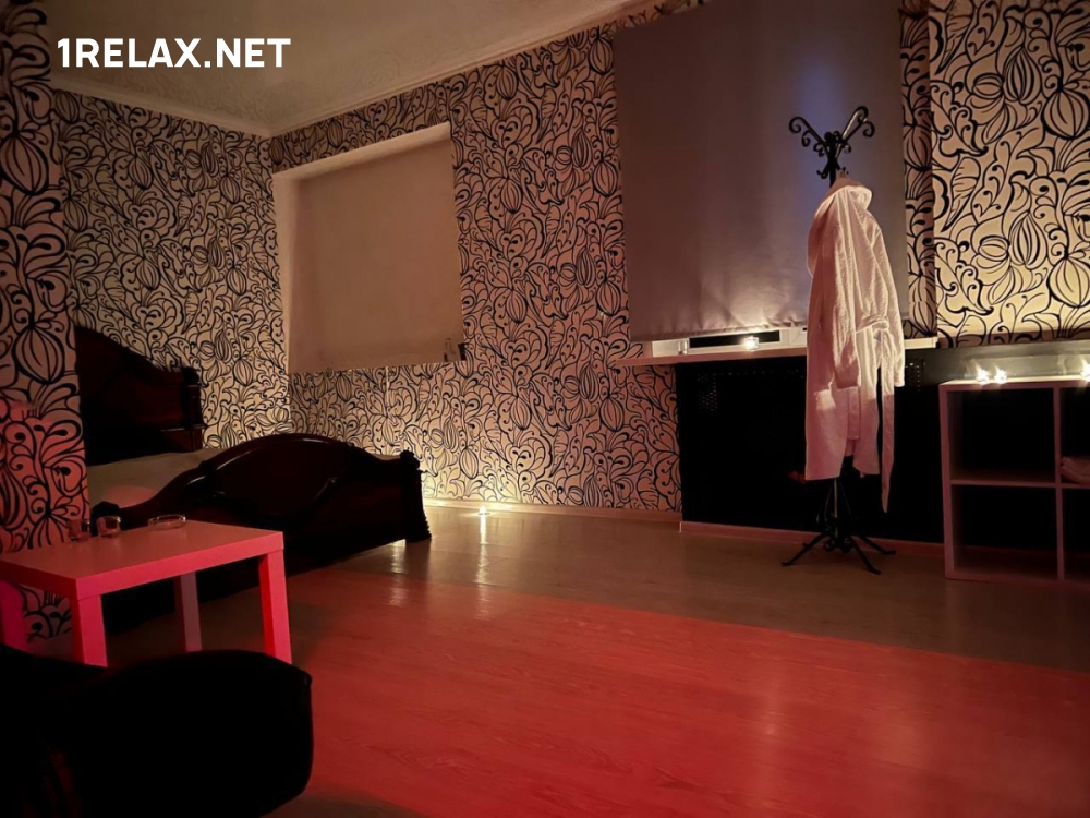 Четыре комнаты массажного салона оформлены в спокойных светлых оттенках. Приглушенная красная подсветка добавляет пикантности и пробуждает страсть. В каждой комнате есть удобная кровать и кондиционер. Для водных процедур предусмотрены душ или джакузи.